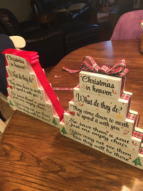 Free delivery for many products. Christmas in heaven what do they do poem memorial table top block set wood sign homespunblessingsocs. Many of you wanted some tips and advice on doing our etched wording plaques on the christmas in heaven blocks.